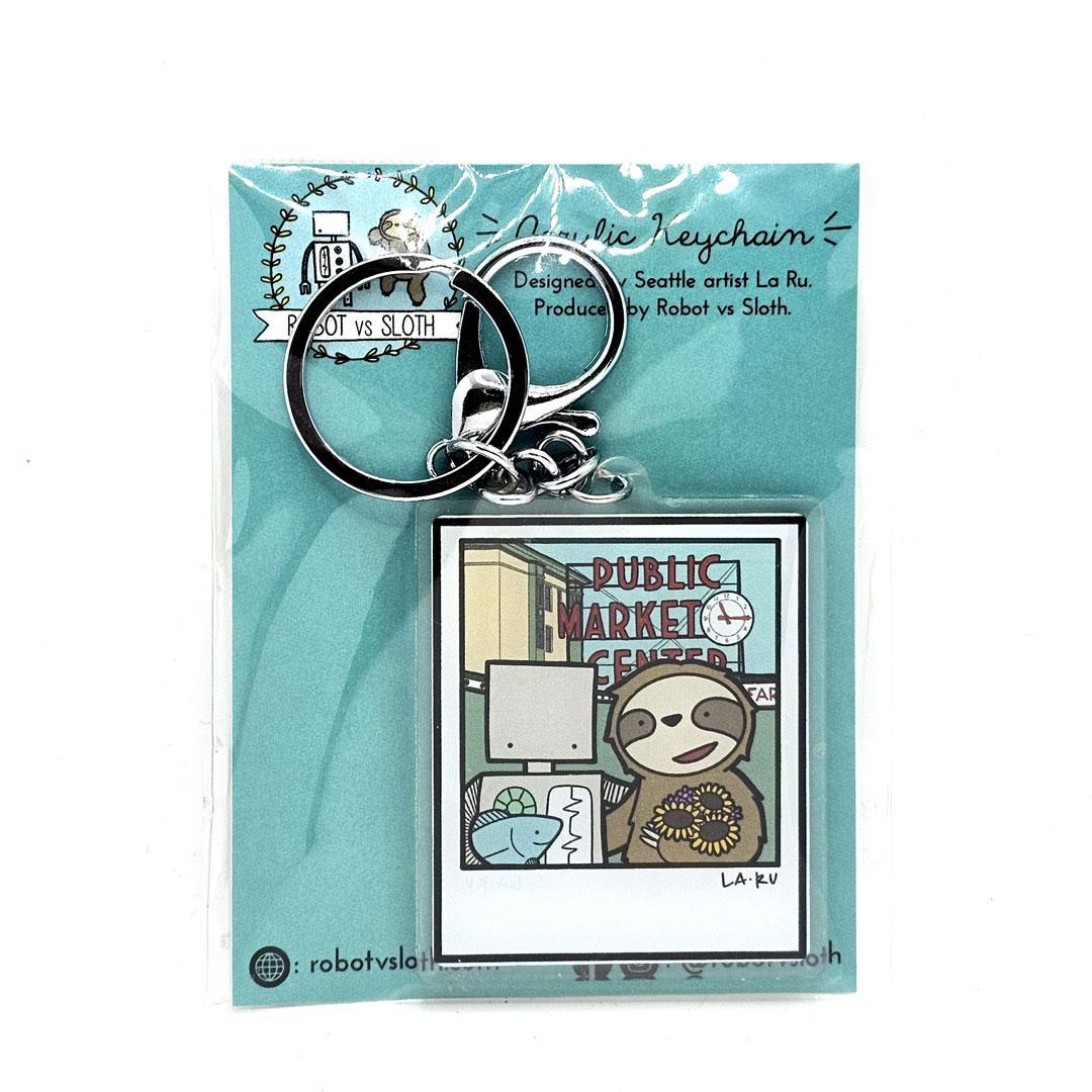 Keychain - Robot and Sloth at Pike Place Market by LaRu