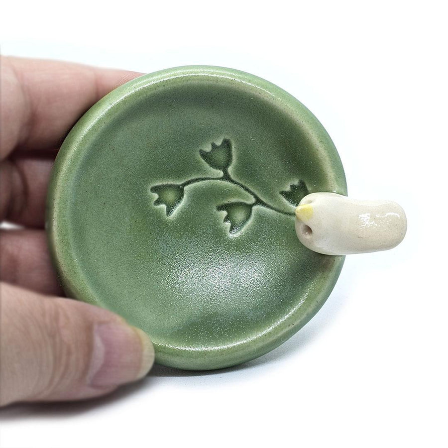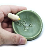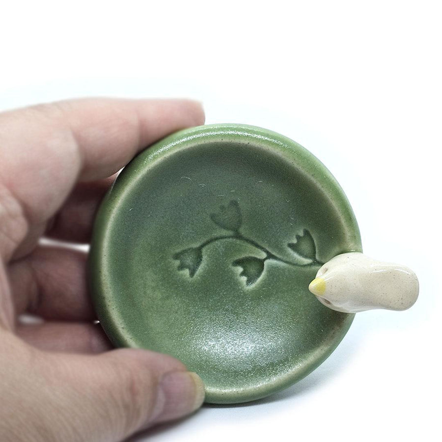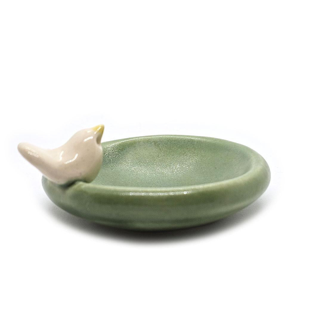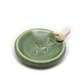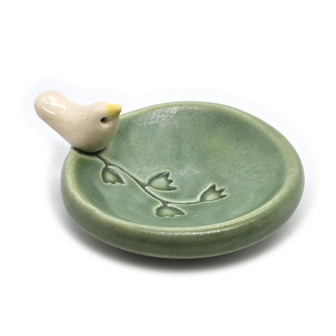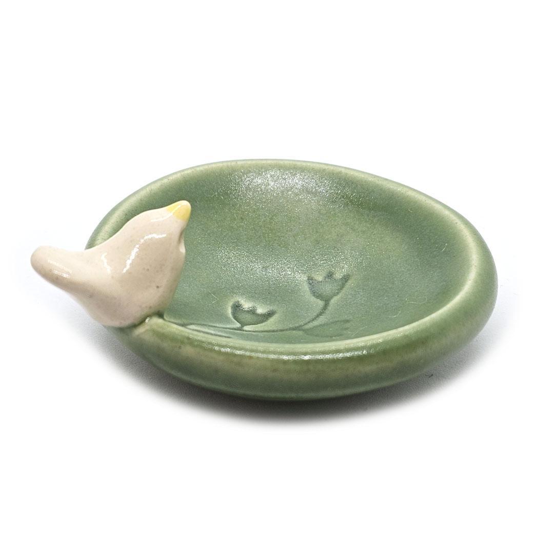 Round Ring Dish - White Bird with Flowers (Small Green) by Tasha McKelvey