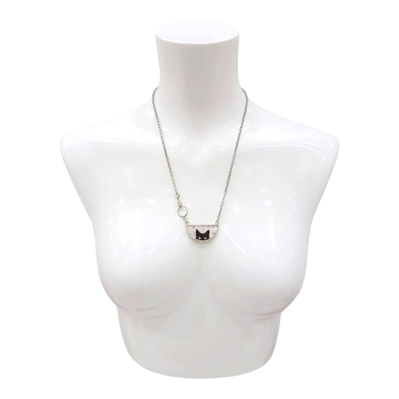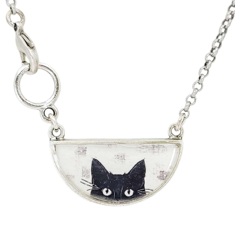 Necklace - Peeking Black Cat Half-Round Resin (Silver) by Christine Stoll |Altered Relics