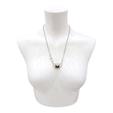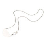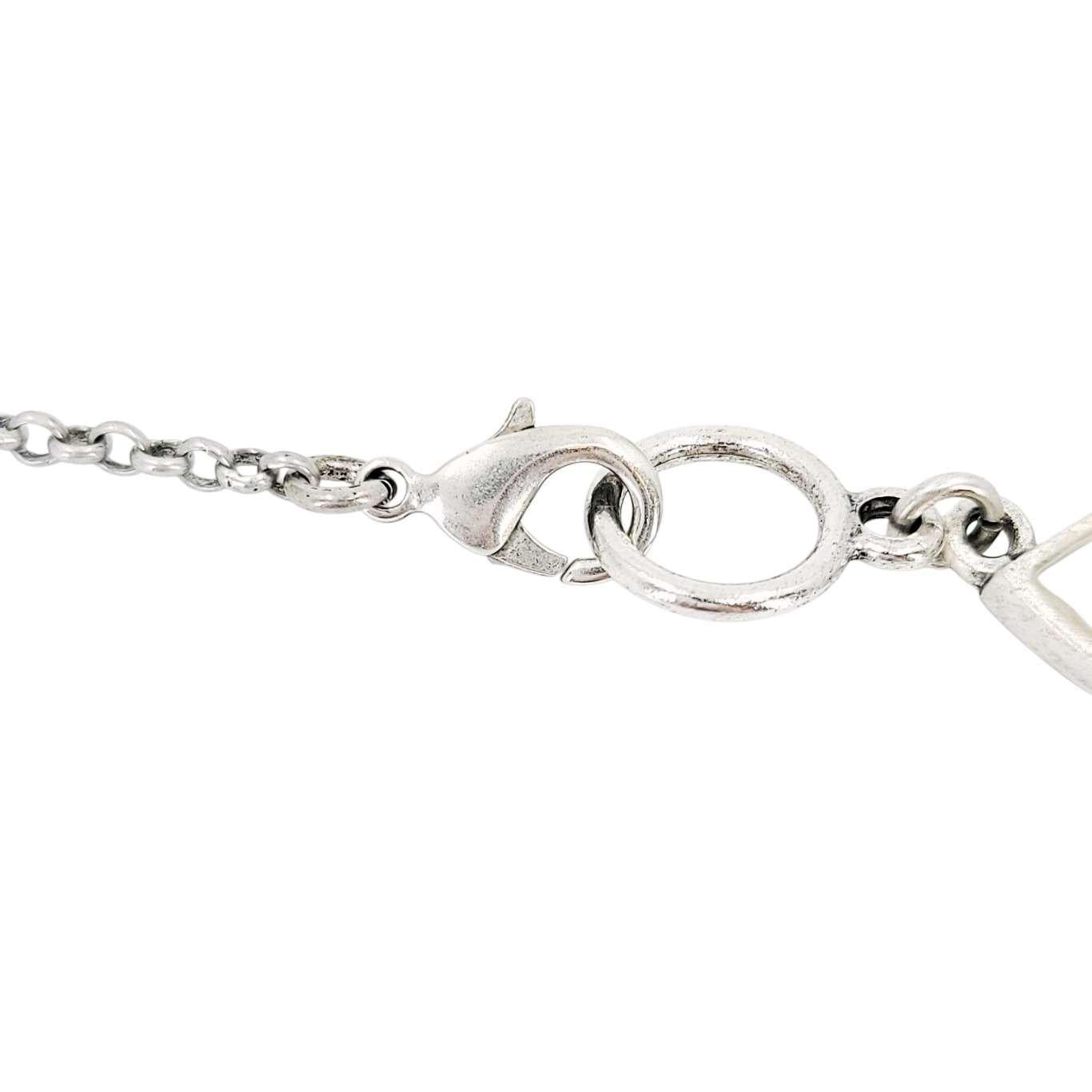 A black cat digital image (circa 1890s-early 1900s) is sealed with resin in a 1.5-inch wide antiqued silver-plated half-circle setting on an 18-inch antiqued silver-plated rolo chain. The lobster clasp and ring are situated in front for easy on-and-off.