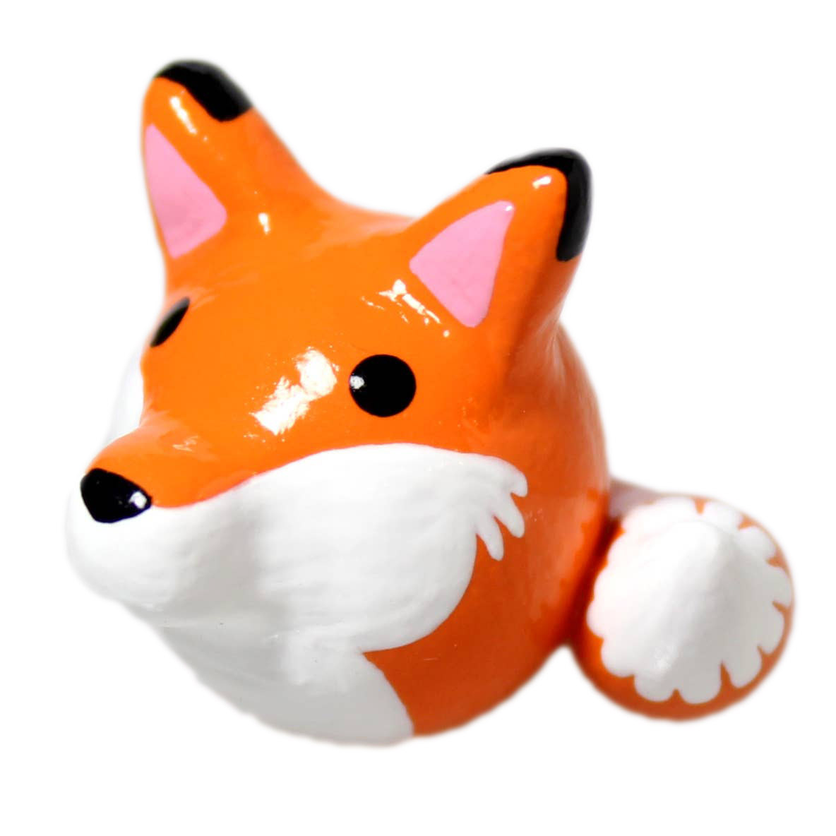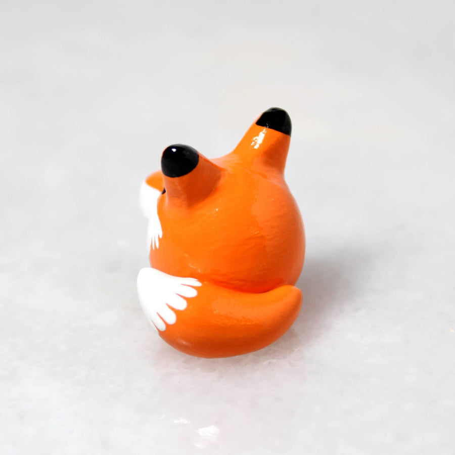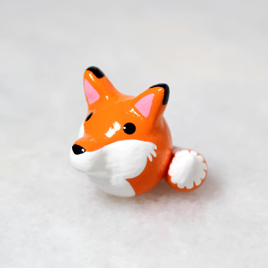 This little fox figurine is handmade with polymer clay. Hand painted with acrylic paints from the tip of its ears to the tip of its tail, the fox is finished with a durable glossy varnish.