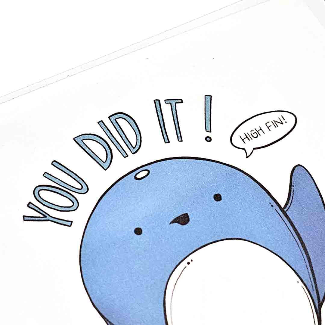 A cheerful whale exclaims an encouraging, "You Did It! (High Fin!) Job Whale Done"