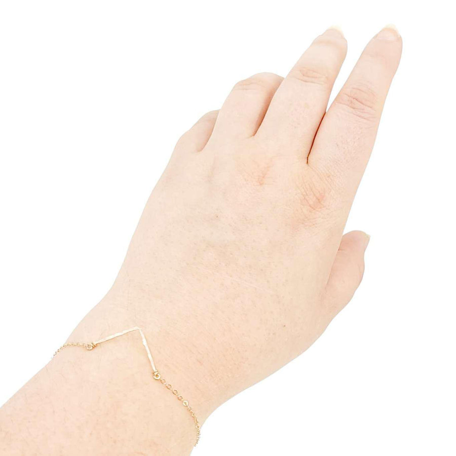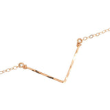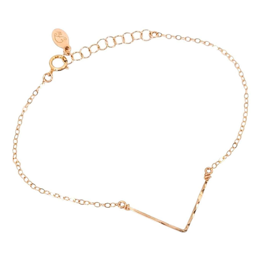 This delicate bracelet features a hand-textured chevron perched on a 7-inch rose gold fill chain.
