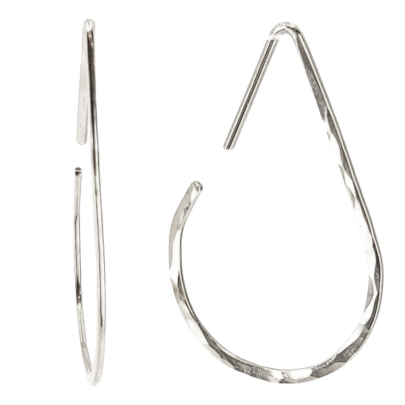 Elegant teardrop-shaped hoop earrings in sterling silver.