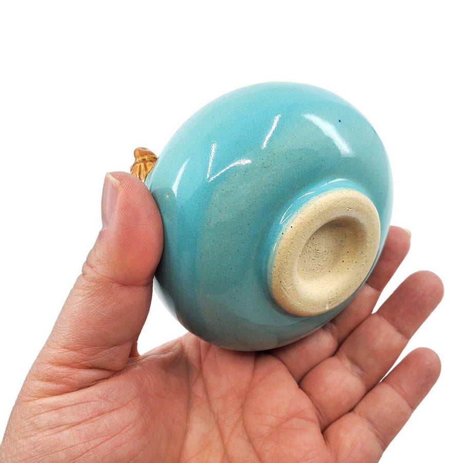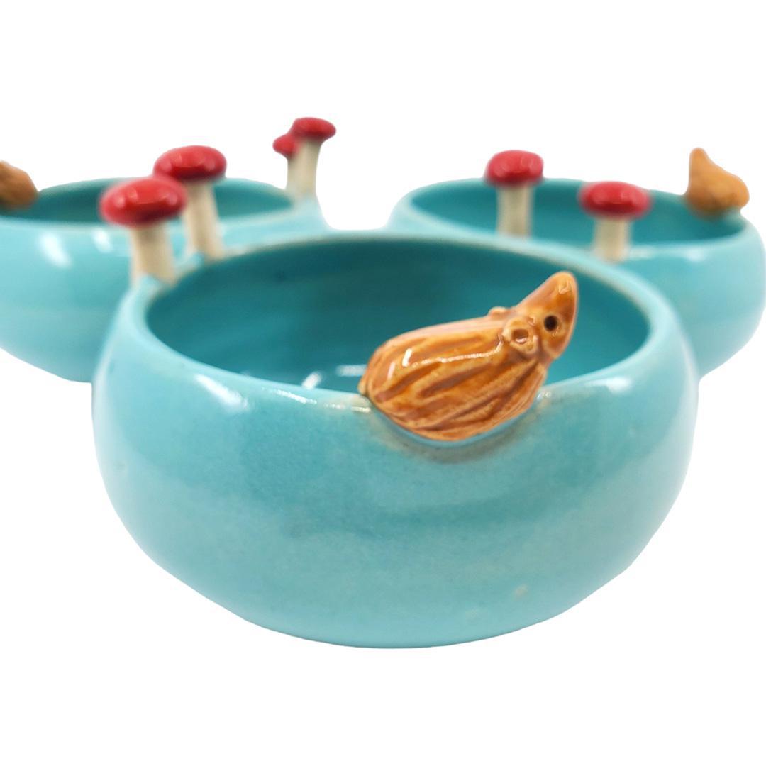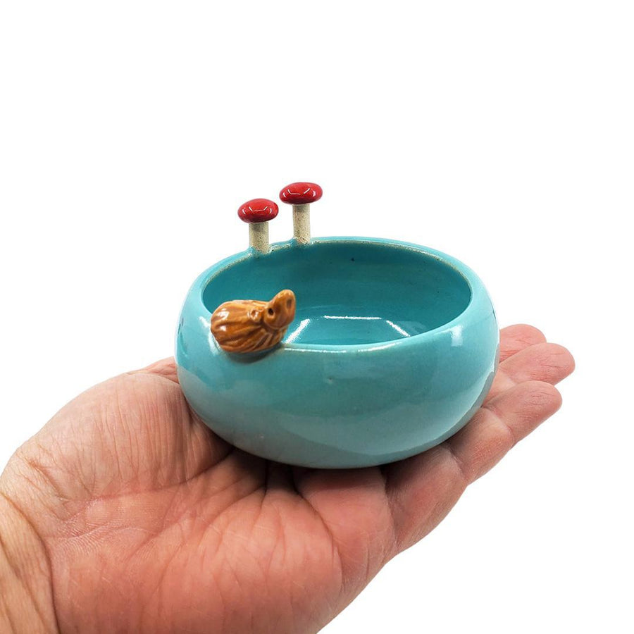 TM103TA $52 - Turquoise Bowl Hedgehog with Mushrooms Small