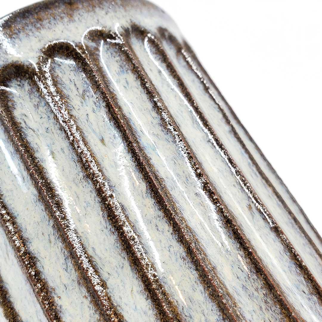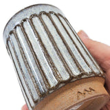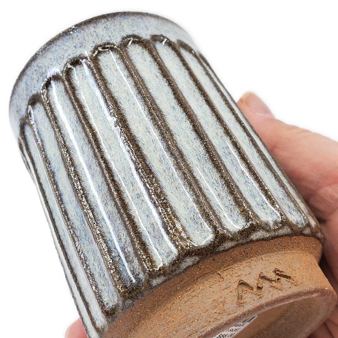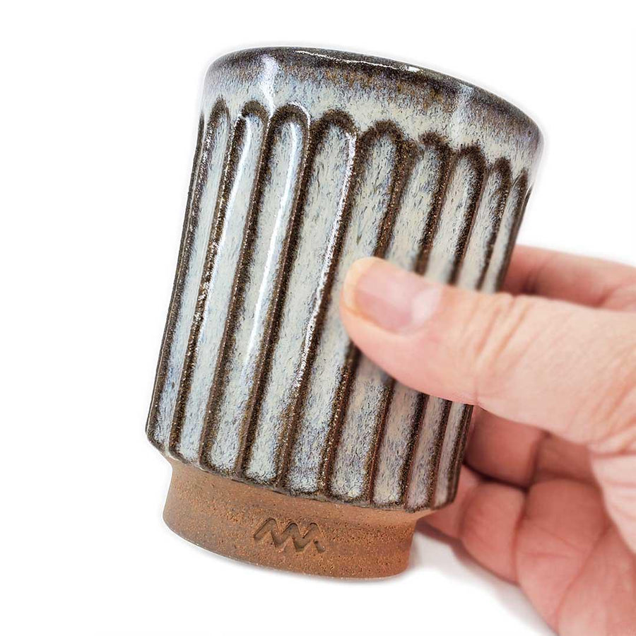 - Striking textured ridges on the exterior of the cup and light glaze drips highlight the artisan handmade nature of the piece