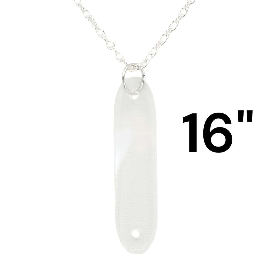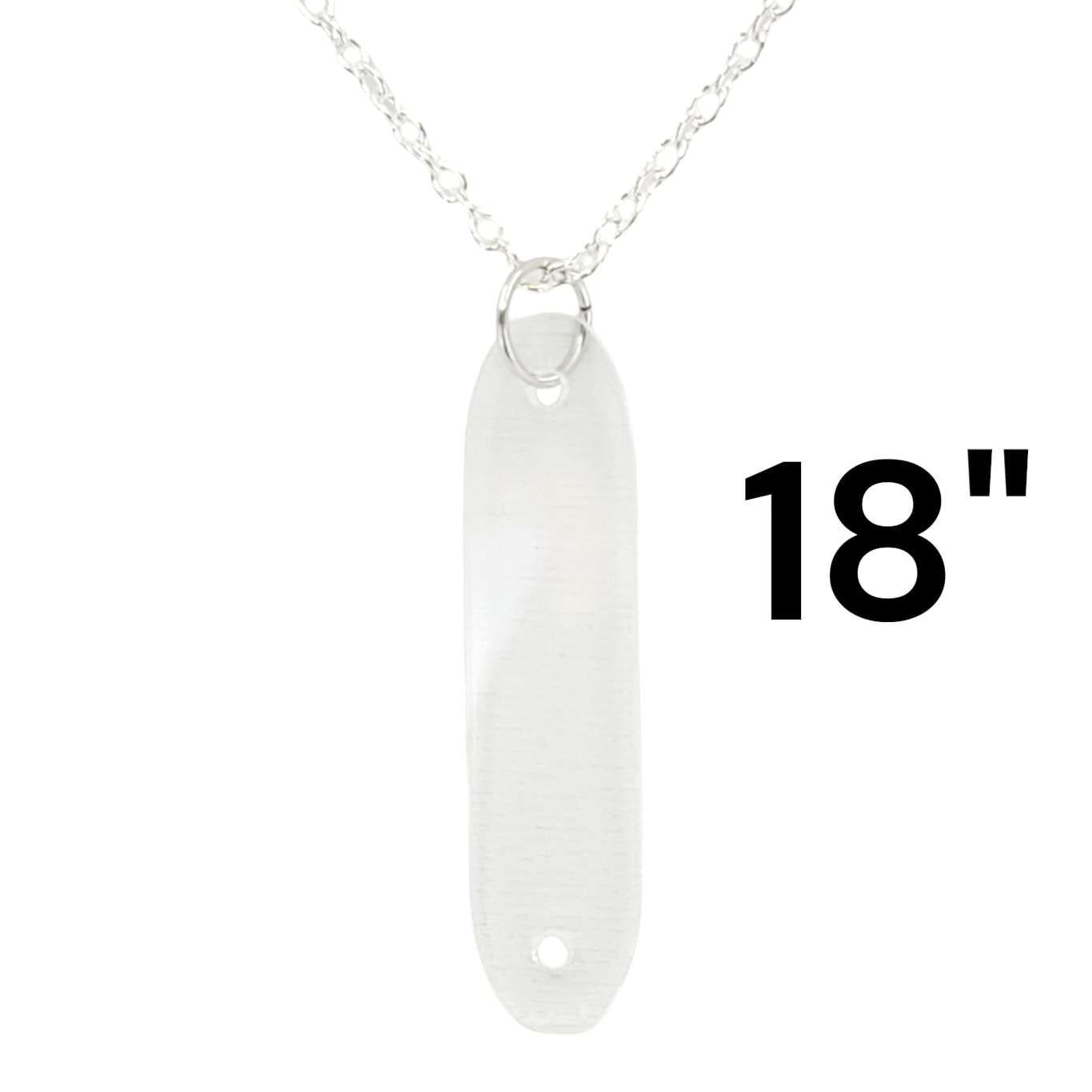 - Includes a hypoallergenic stainless steel chain in 16in or 18in length