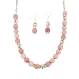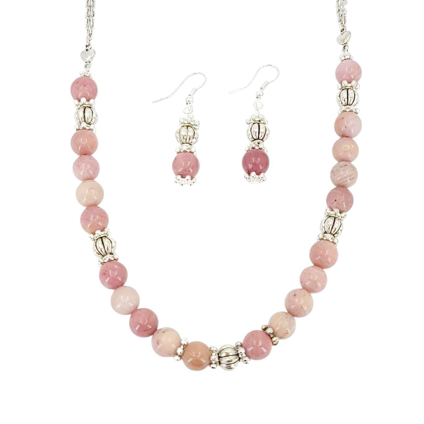 TAN241BUN $85 - Rhodonite Bead Chain Necklace and Earrings Bundle