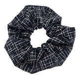A true classic, this adorable cotton scrunchy featuring a design of bold white crosshatch lines on a black background will keep your hair back in style!