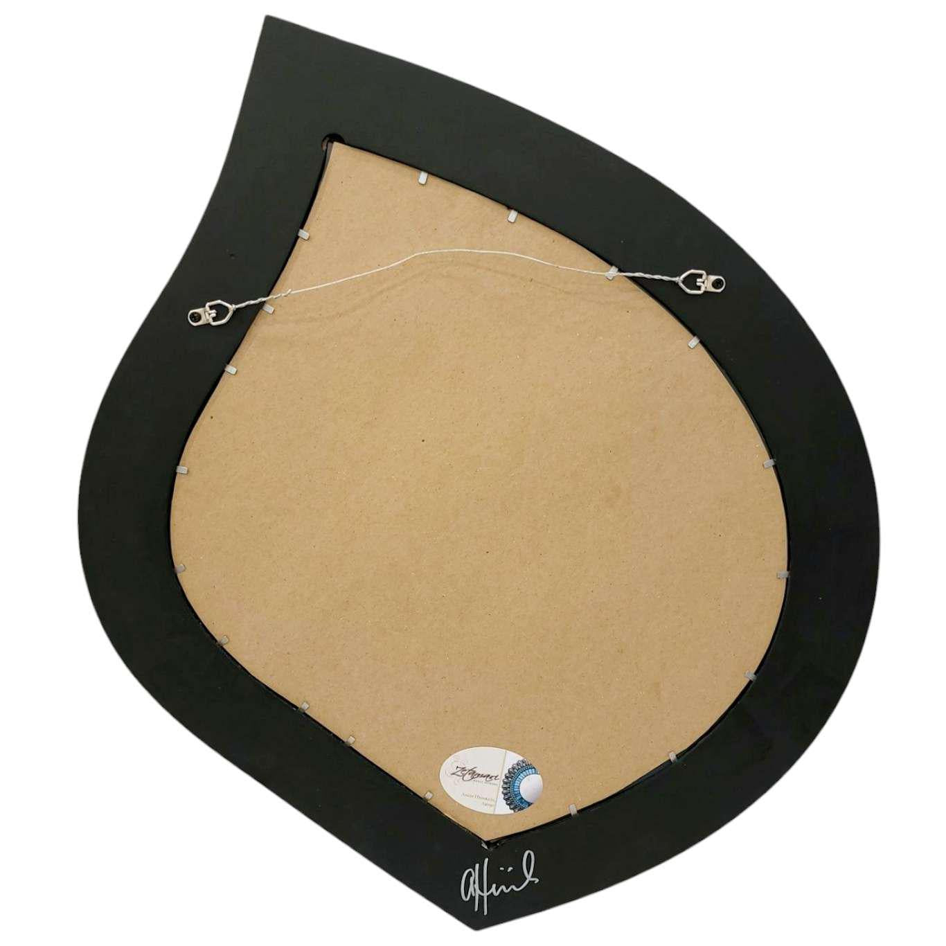 This gorgeously ornate mirror evokes the ocean with its shifting blue-green glass tiles and ring of silvery teardrops like the crest of a wave. Surprisingly light and very easy to hang with a regular picture hanger thanks to the pre-installed D rings and coated wire rated at least 2-3x the weight of the mirror for a secure hold.