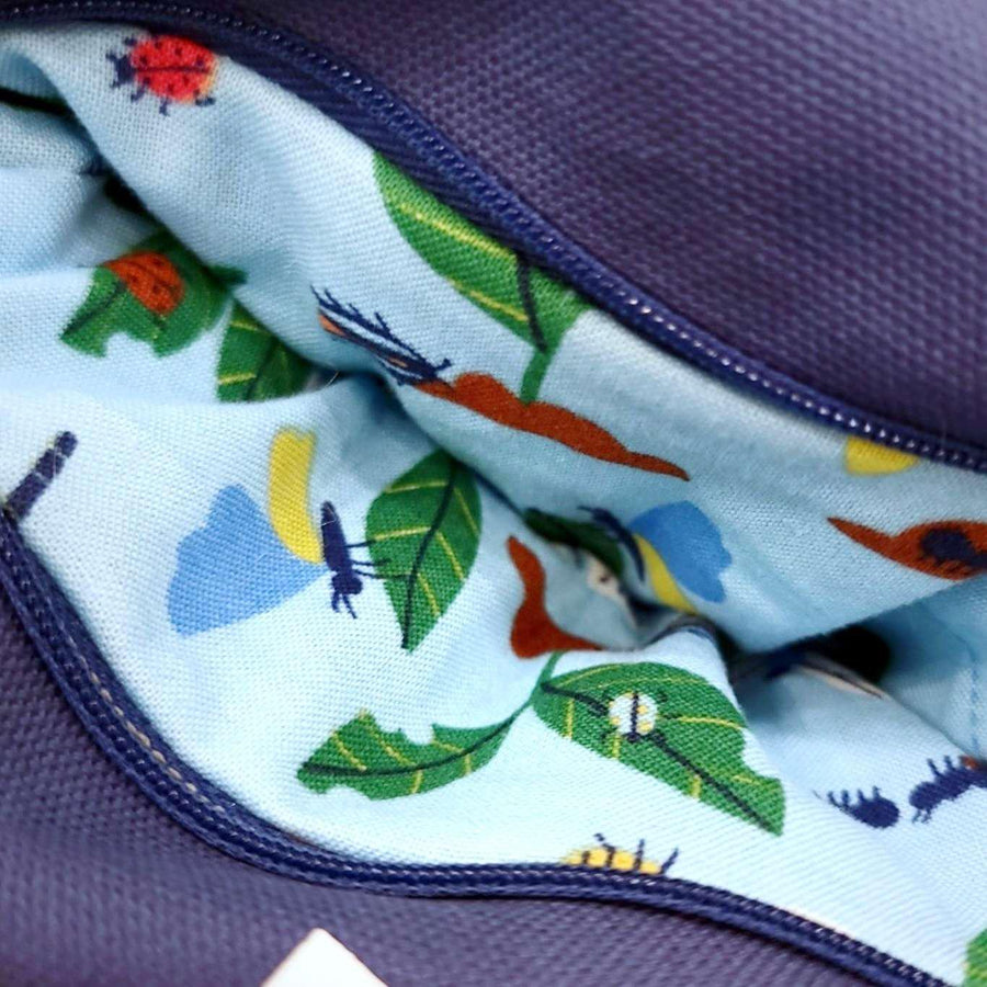 - Materials: Cotton canvas, cotton fabric, poly fill, vinyl, zipper