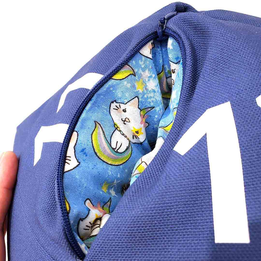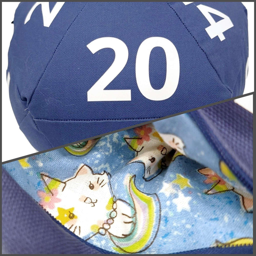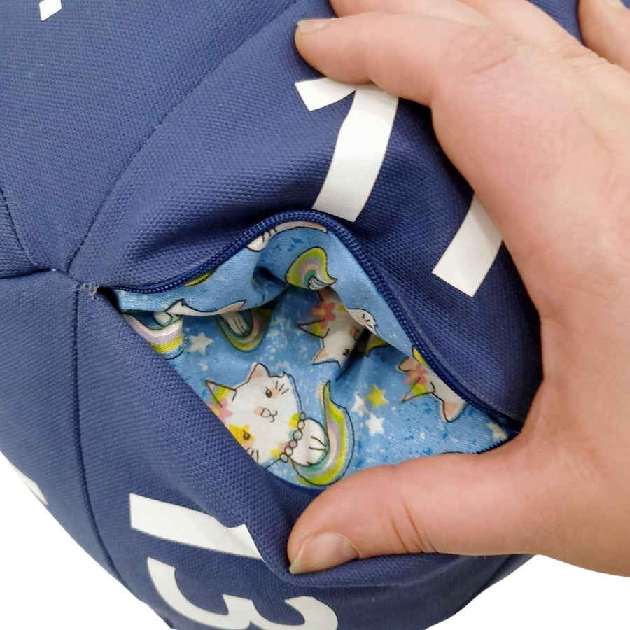 STP403UC $85 - Unicorn Cat Pocket Blue Canvas White Numbers Large D20 Plush Pillow