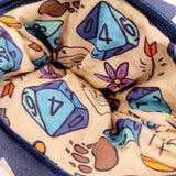 Get extra cozy during any gaming adventure with this blue canvas and white numbers D20 die-shaped pillow complete with secret pocket!