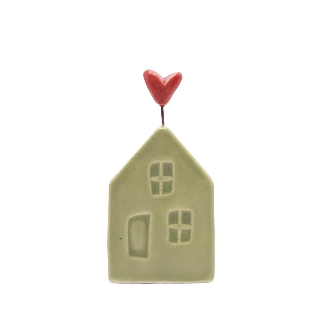 Tiny Pottery House - Grass Green with Heart (Red or Pink) by Tasha McKelvey
