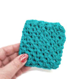 Two (2) long-lasting hand-knit nylon teal blue scrubbies.