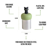 This super cute tea steeper topped with a black cat and green base makes loose leaf tea accessible with any size drinkware, anytime, anywhere.
