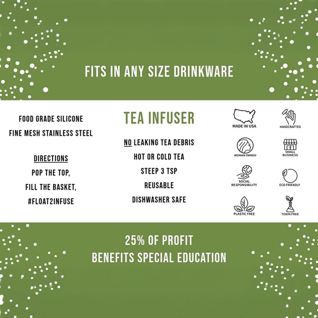 Float2Infuse was founded by Samantha, who designs and assembles the steepers in the US. 25% of the profits are donated to special education initiatives.