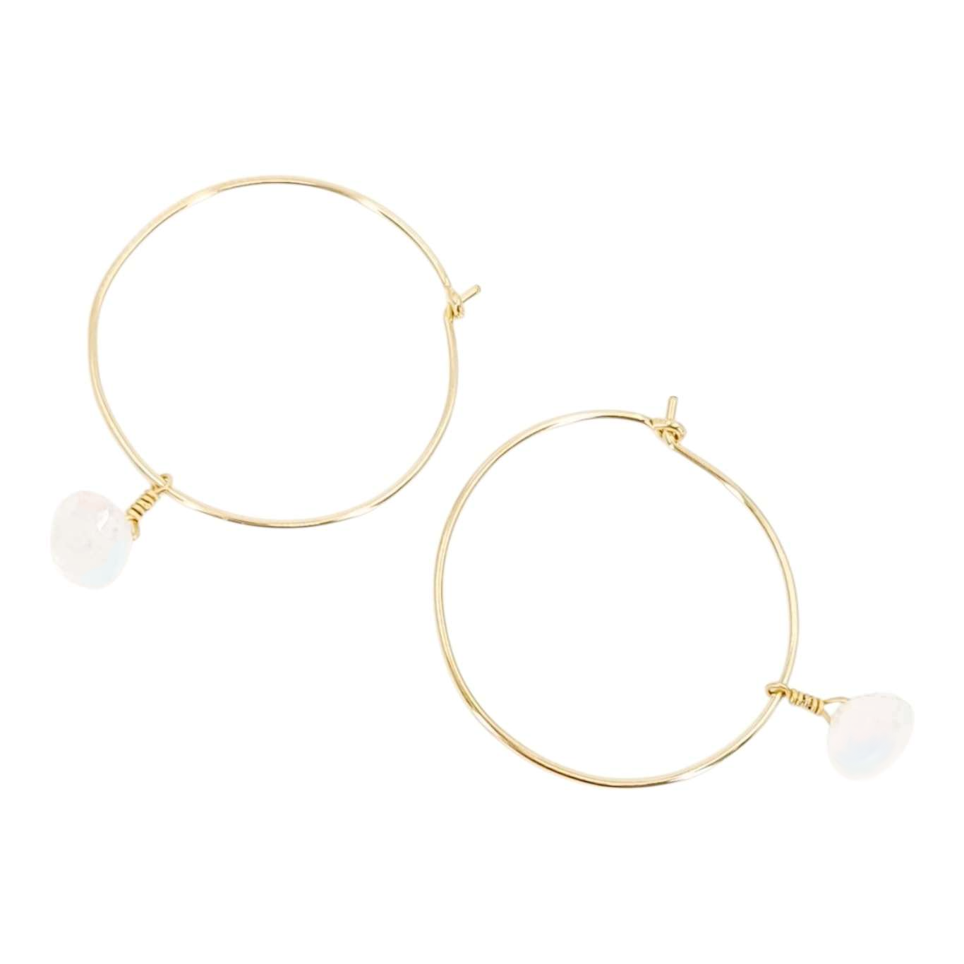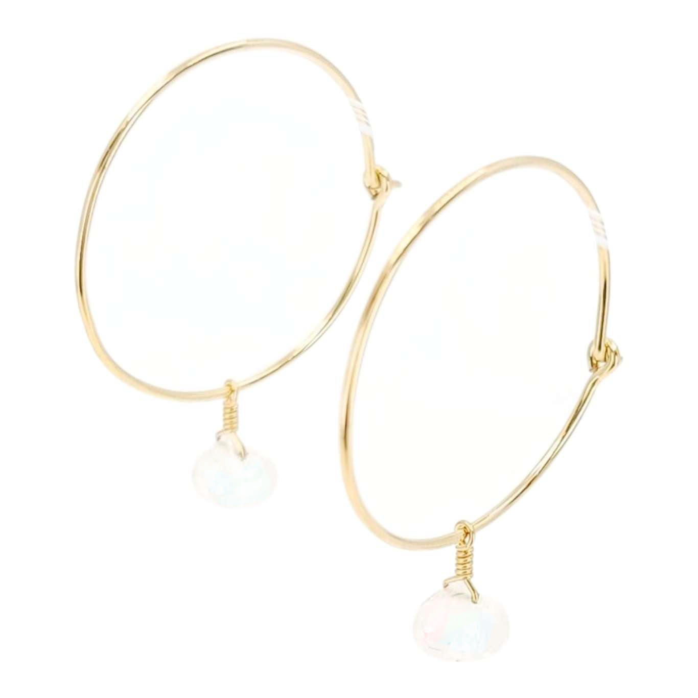 Earrings - Rainbow Moonstone Drop Hoops (14k Gold Fill) by Foamy Wader