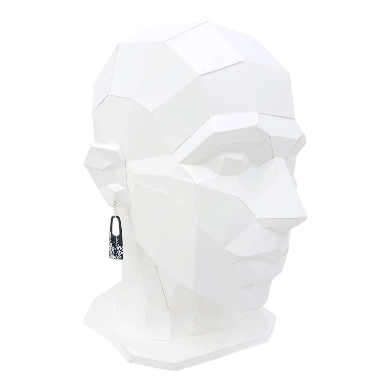 Earrings - Small Open Rectangle (Black White Botanical) by Magpie Mouse Studios