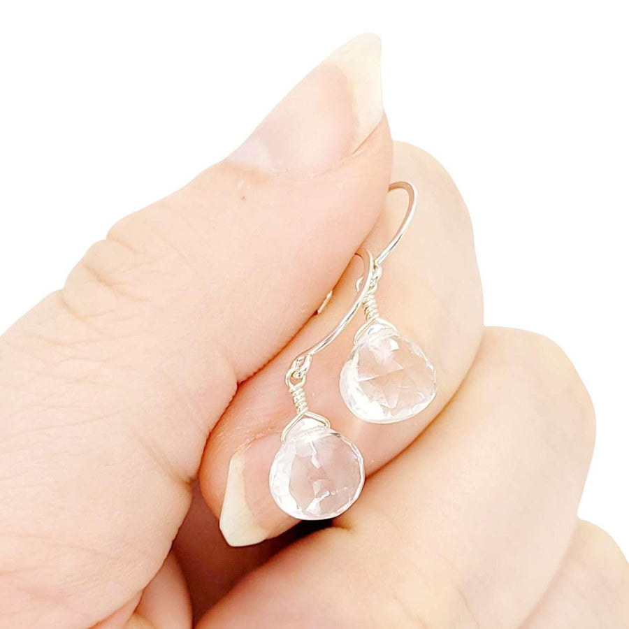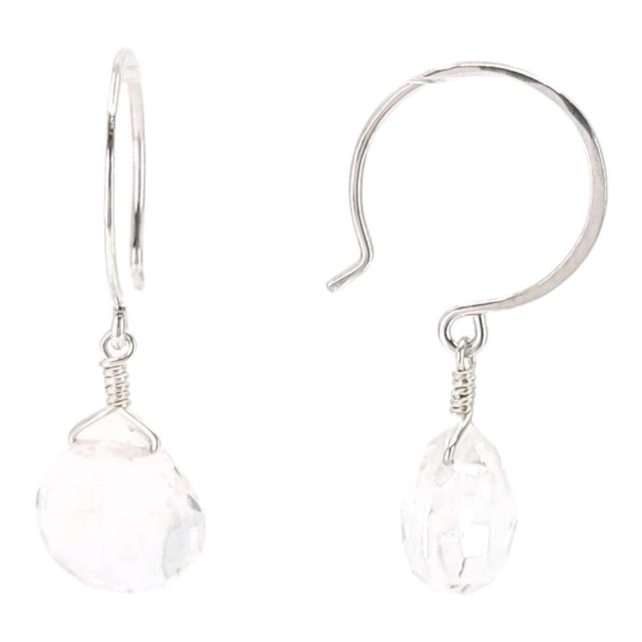 These sweet little earrings feature faceted teardrops of genuine white topaz suspended on circular sterling silver ear wires.