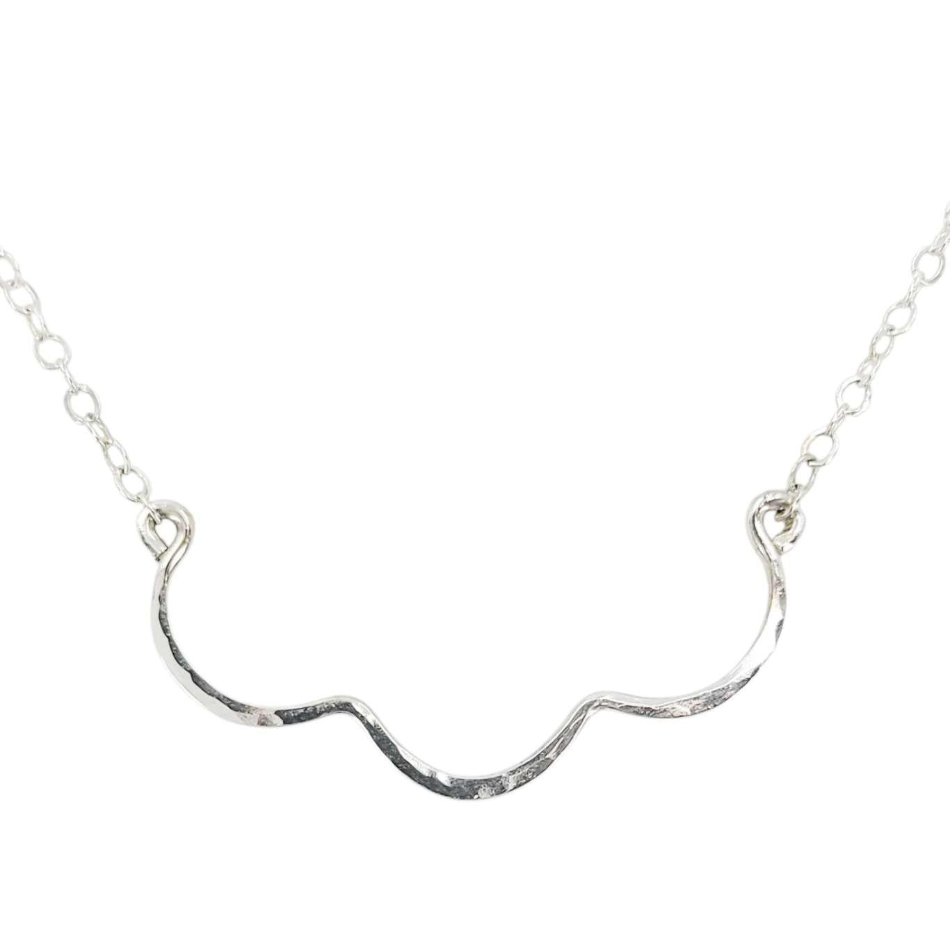 Playfully scalloped sterling silver wire hangs on a 20-inch sterling silver chain.