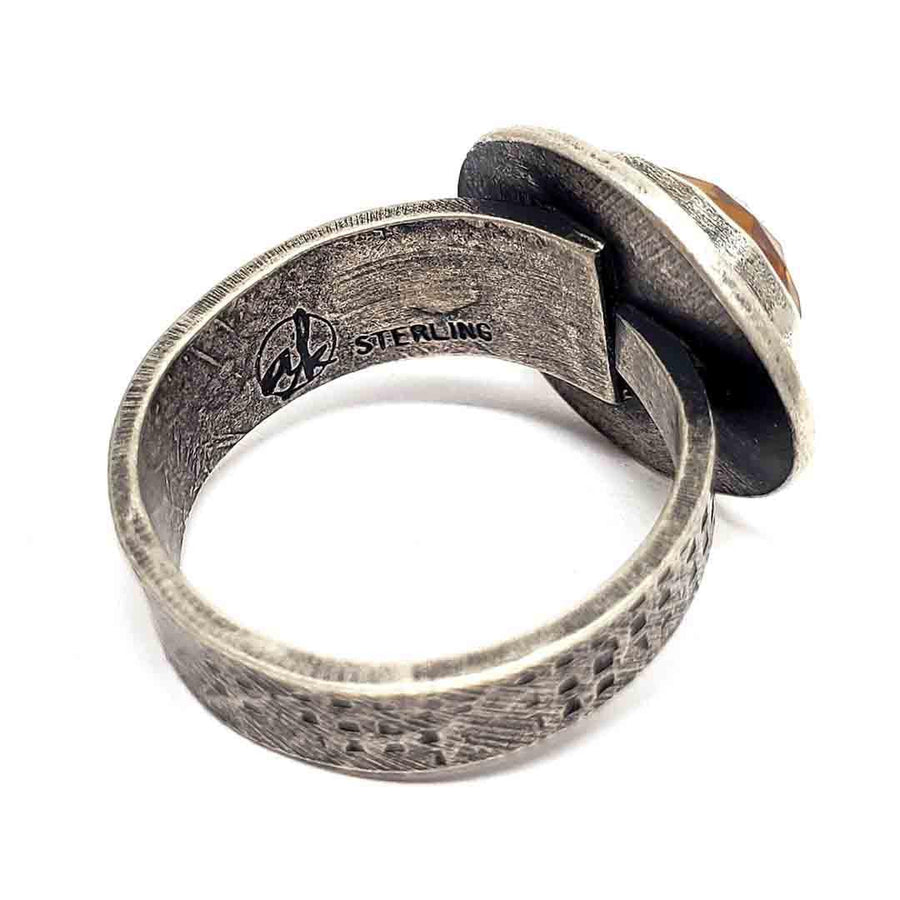 - Oxidized and textured sterling silver bezel and band