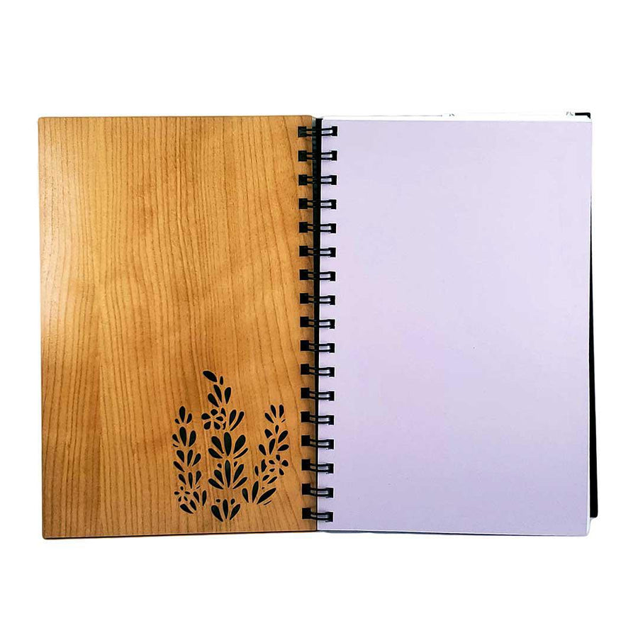 - Beautiful laser-cut wood cover journal