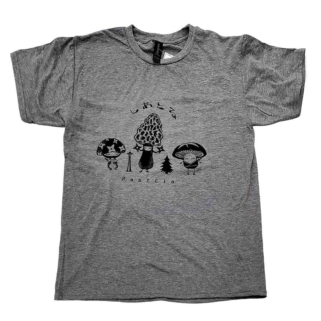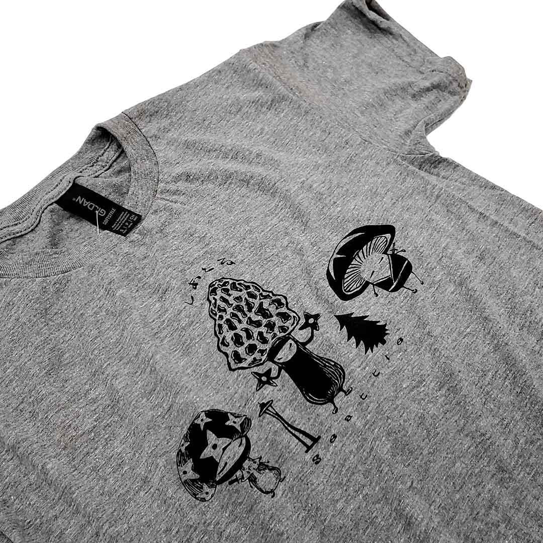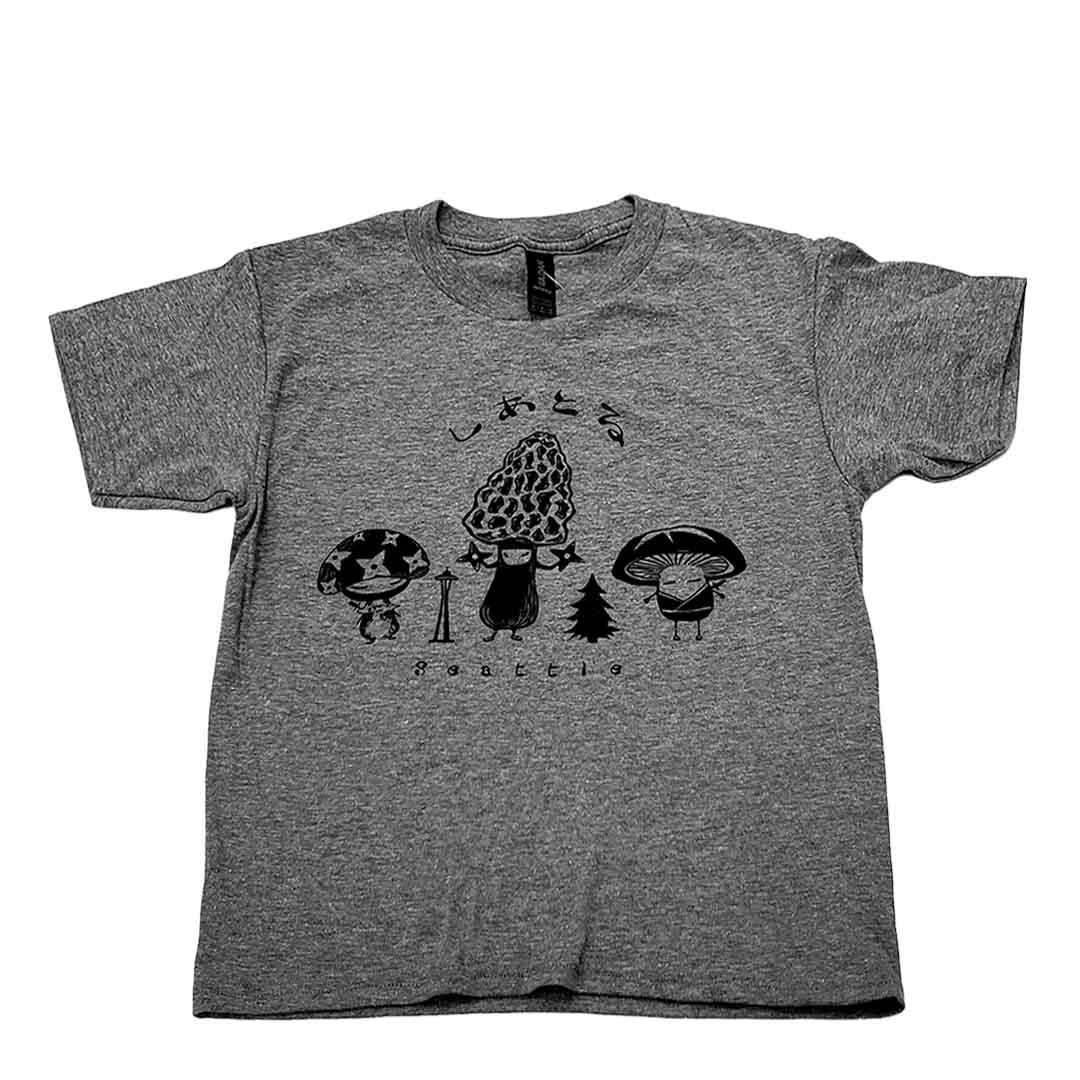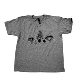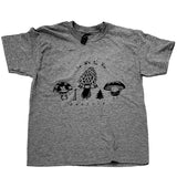 Kids Tee - Mushroom Trio on Gray Crew Neck (Youth S - XL) by Namu