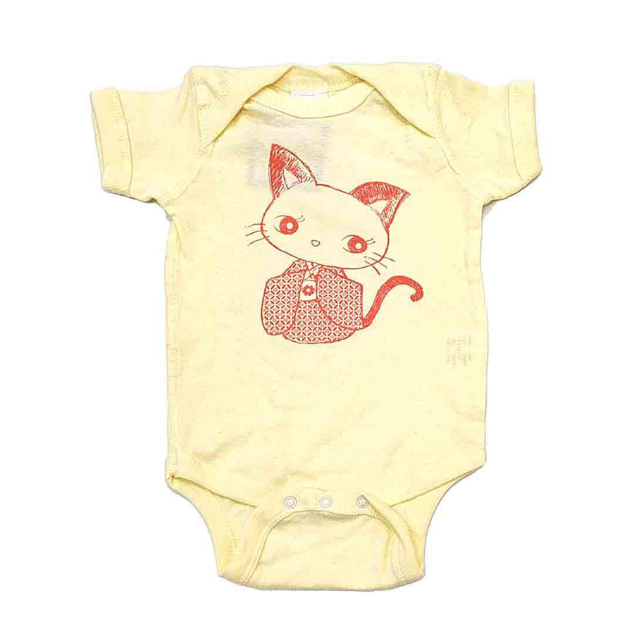 Onesie - Kimono Kitty Red on Yellow by Namu