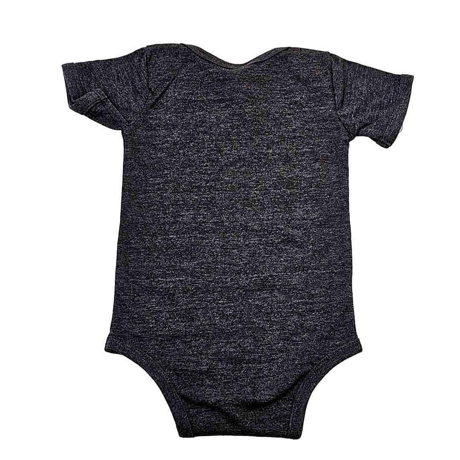 Heathered gray 50% polyester / 25% cotton / 25% rayon bodysuit with envelope shoulders and 3 snap buttons.