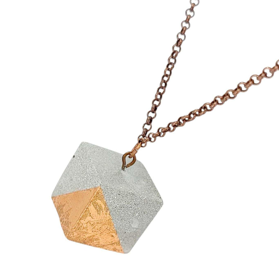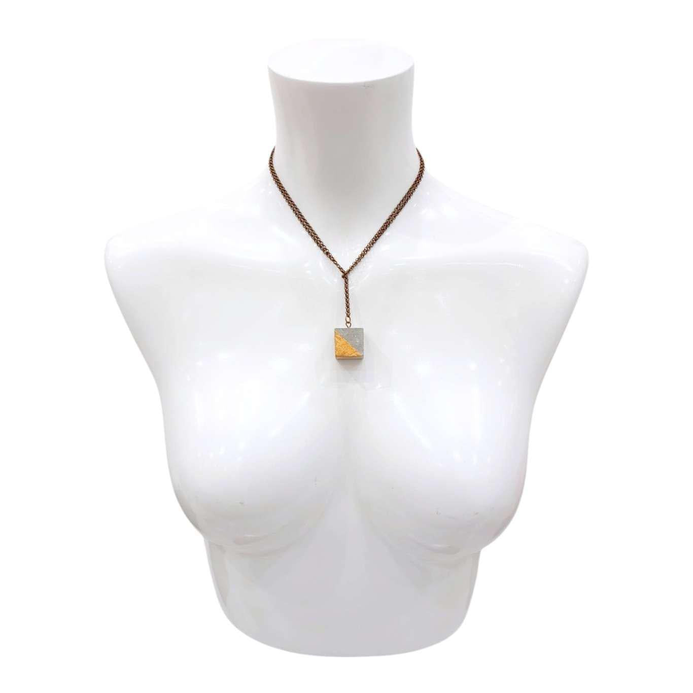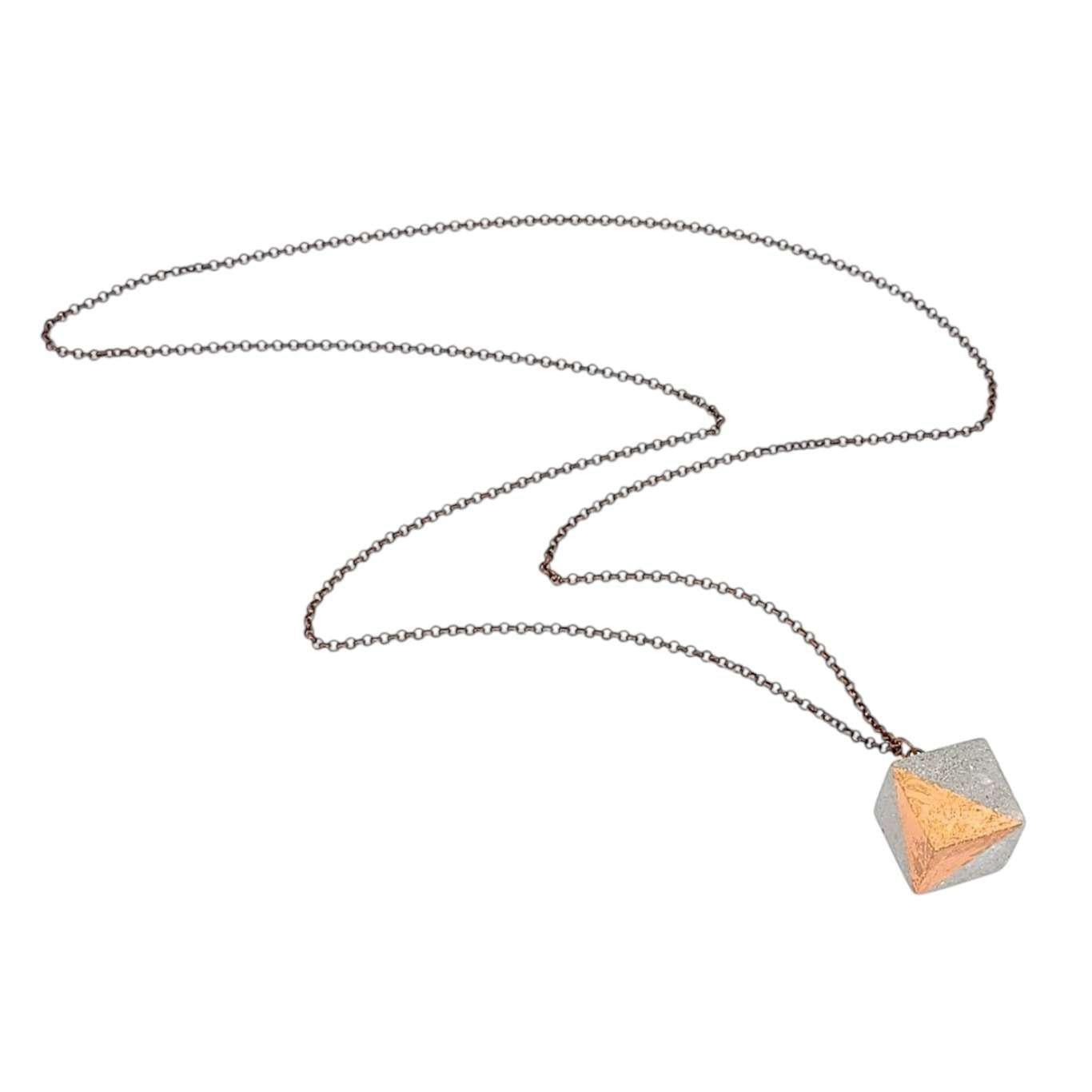 Necklace - Gilded Concrete Cube Pendant (Copper) by Studio Corbelle