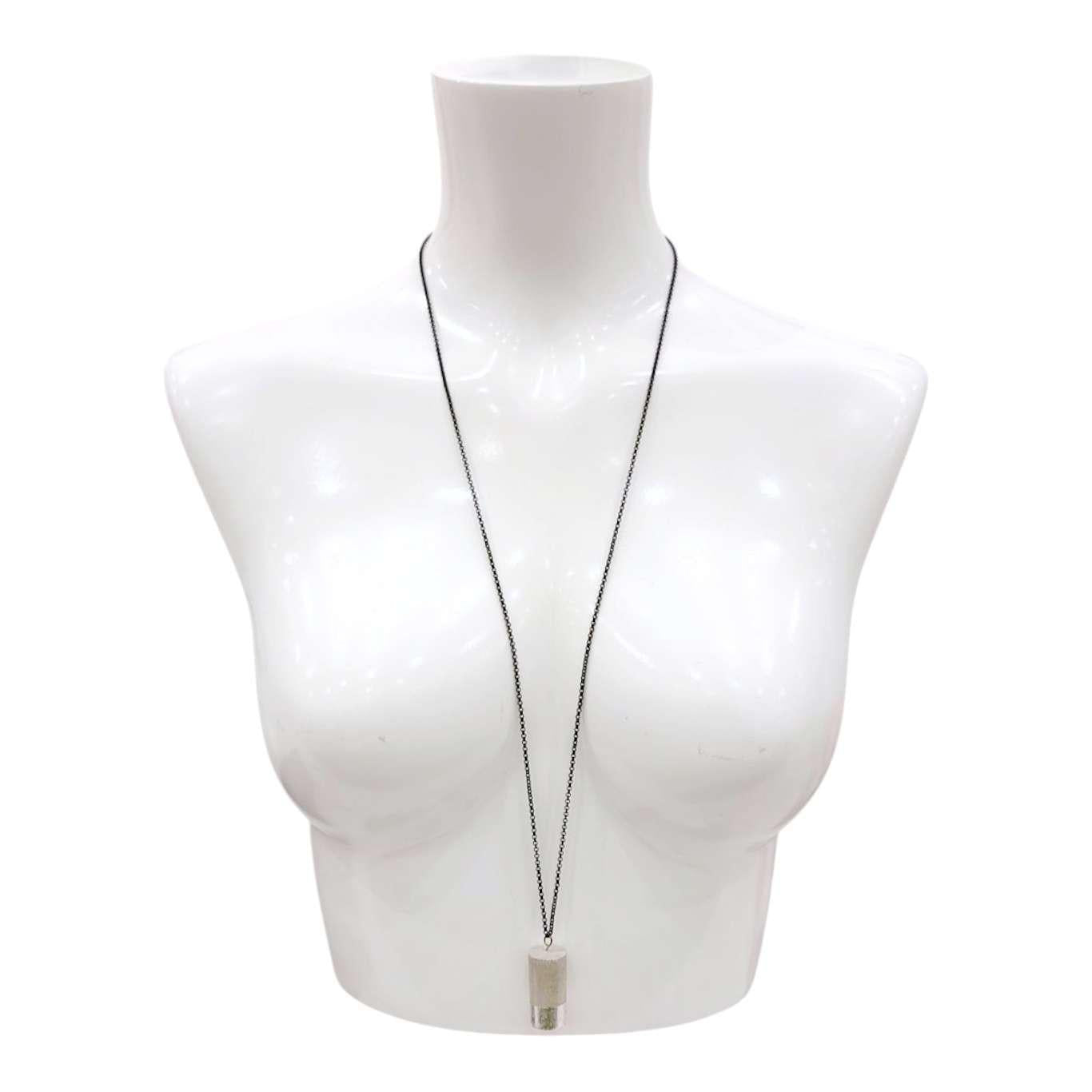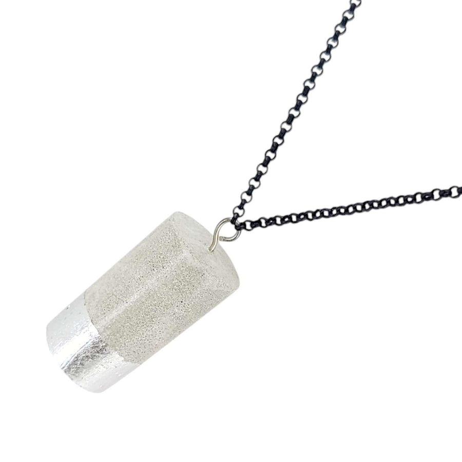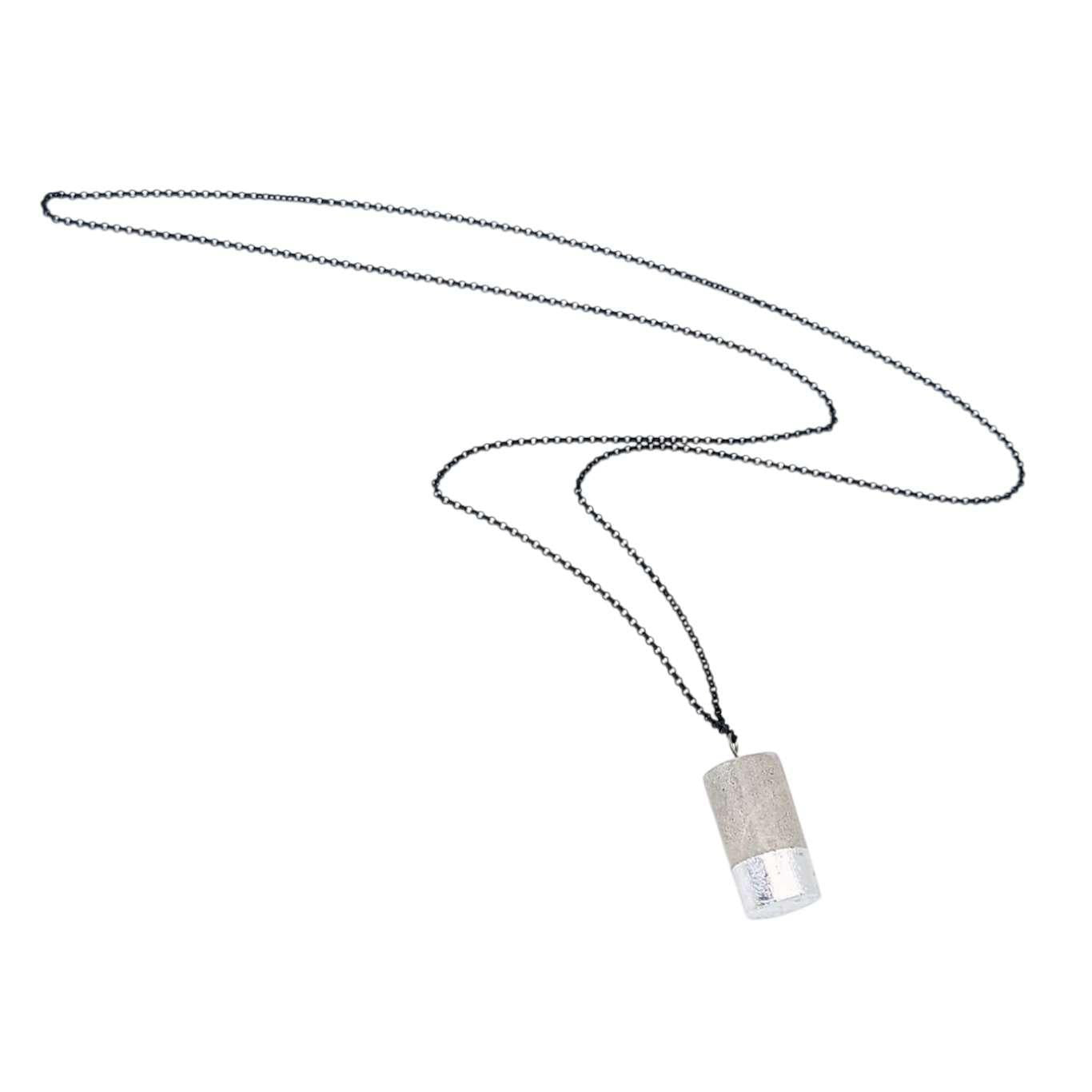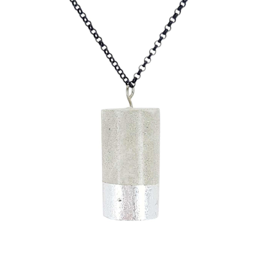 Necklace - Gilded Concrete Cylinder Pendant (Silver) by Studio Corbelle