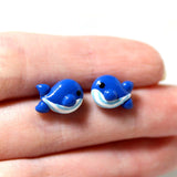 These tiny whale earrings make quite a splash. They are handmade with polymer clay, handpainted with acrylic paint and finished with a durable glossy varnish.