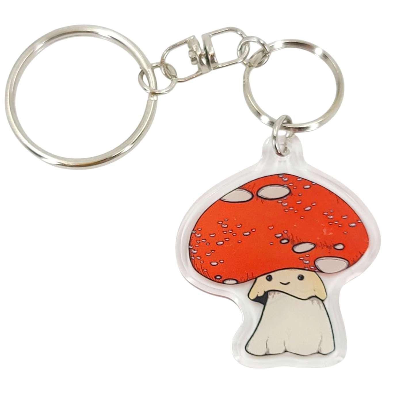 This keychain features a happy little red mushroom (front and back).