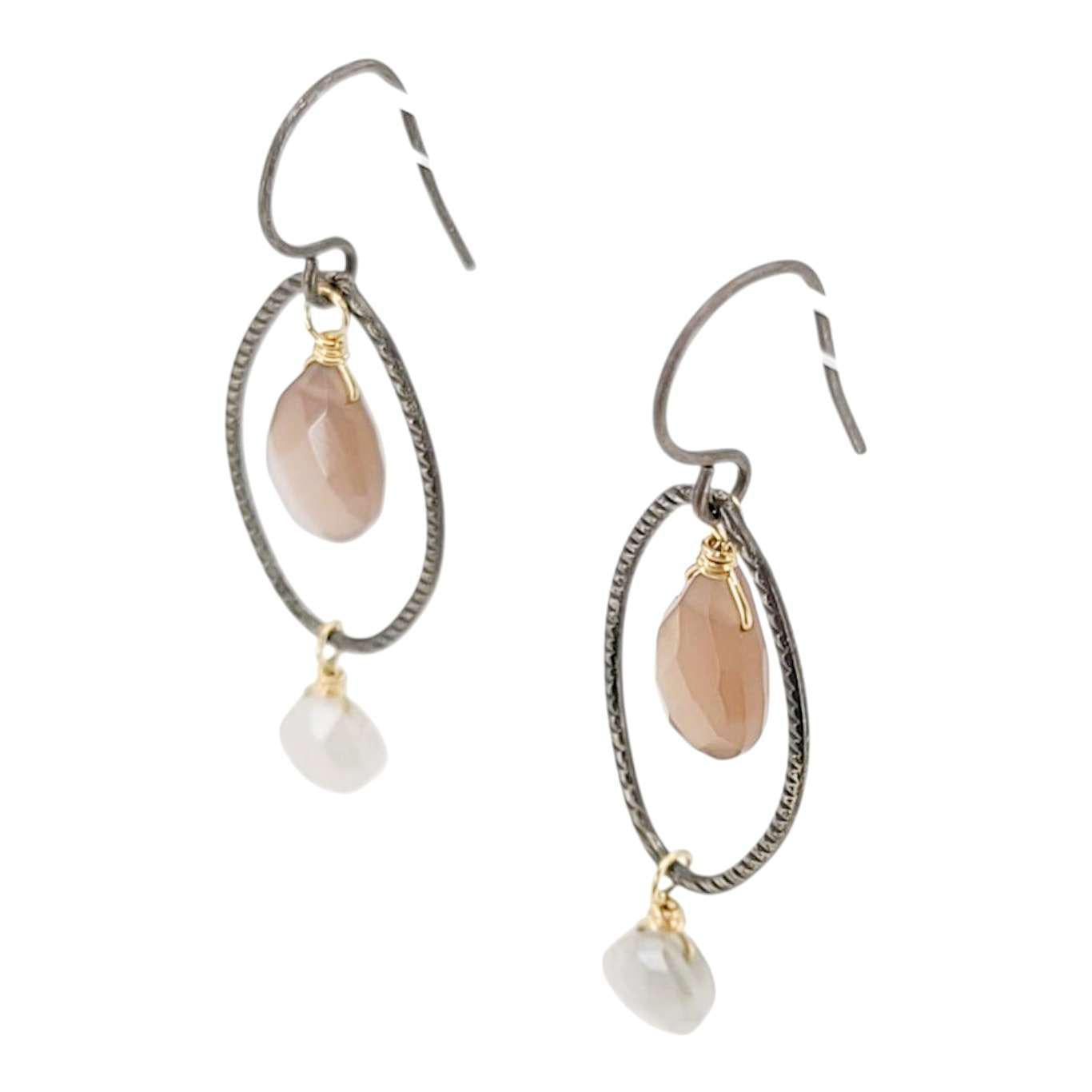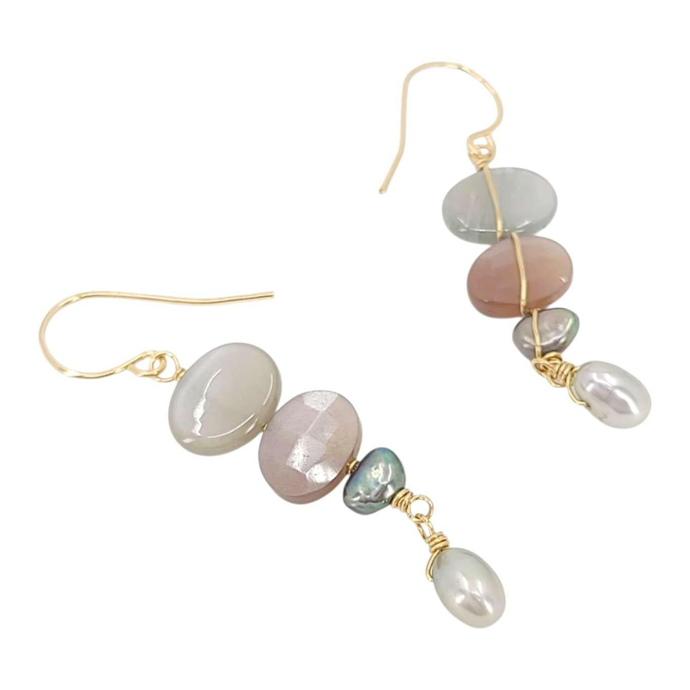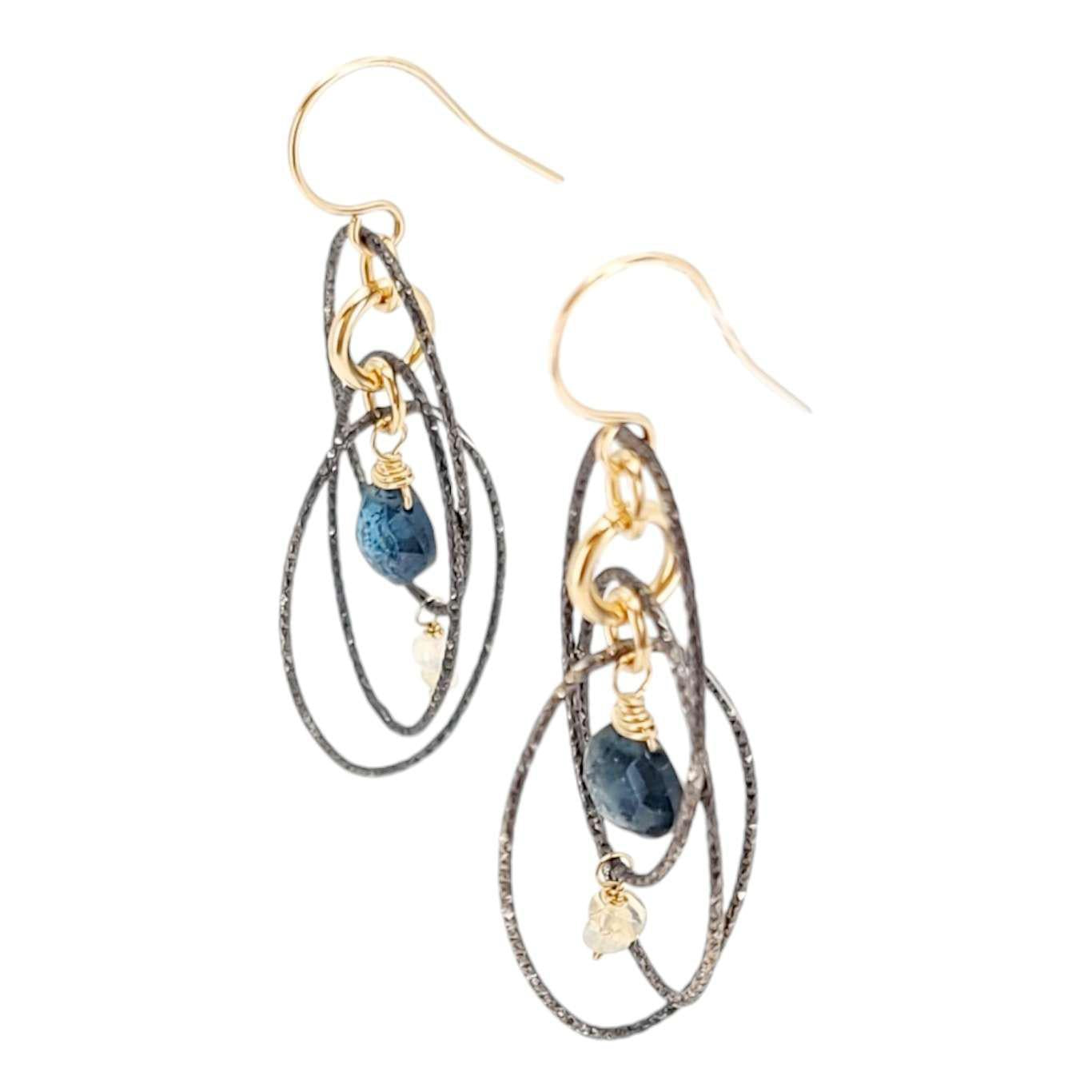 Earrings - Triple Circle Chain Dangles (Larimar, Pearl) by Calliope Jewelry