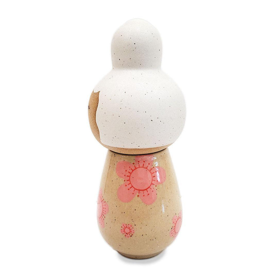 Kokeshi Jar - Small - Coy (White Updo, Pink Floral) by Jennifer Fujimoto