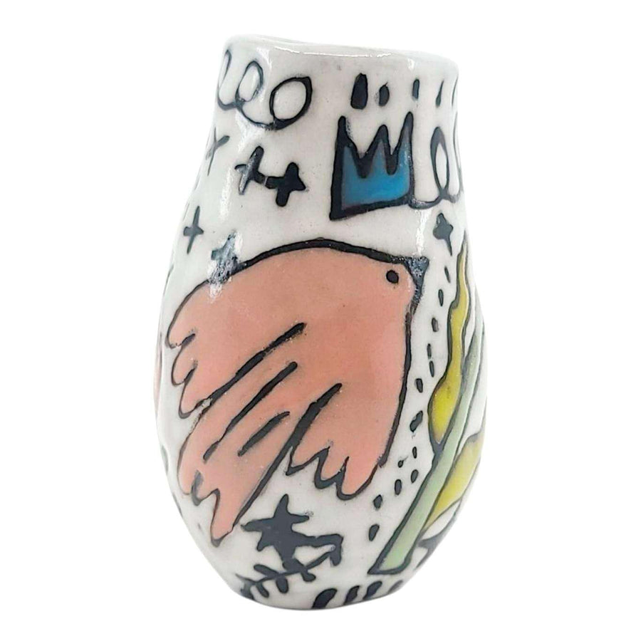Each of these adorably tiny hand-formed vases with white or gray glaze features a unique assortment of cute birds, colorful flowers, and decorative textures.