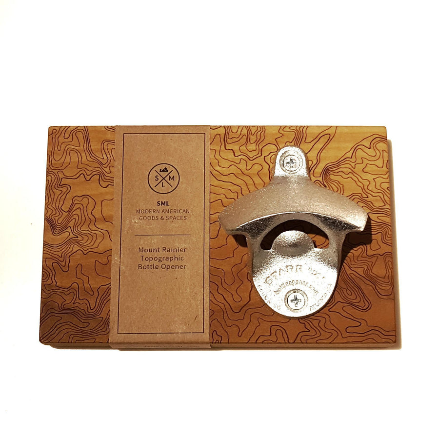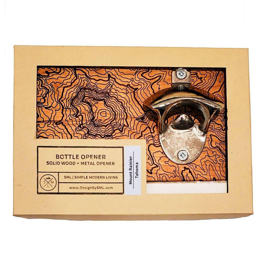 SML81 $55 - Mt Rainier Topo Bottle Opener - Red Wood