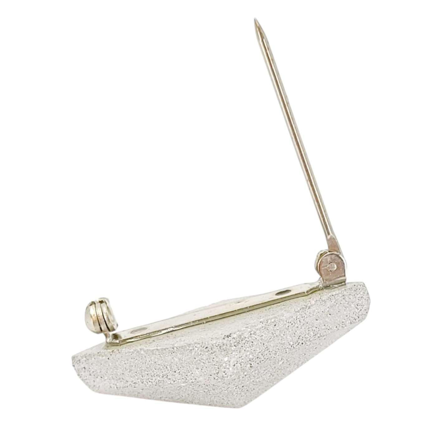 Inspired by Brutalist architecture, this simple diamond brooch is formed of a proprietary blend of concrete accented on one face by copper leaf and backed by a sturdy locking pin.
