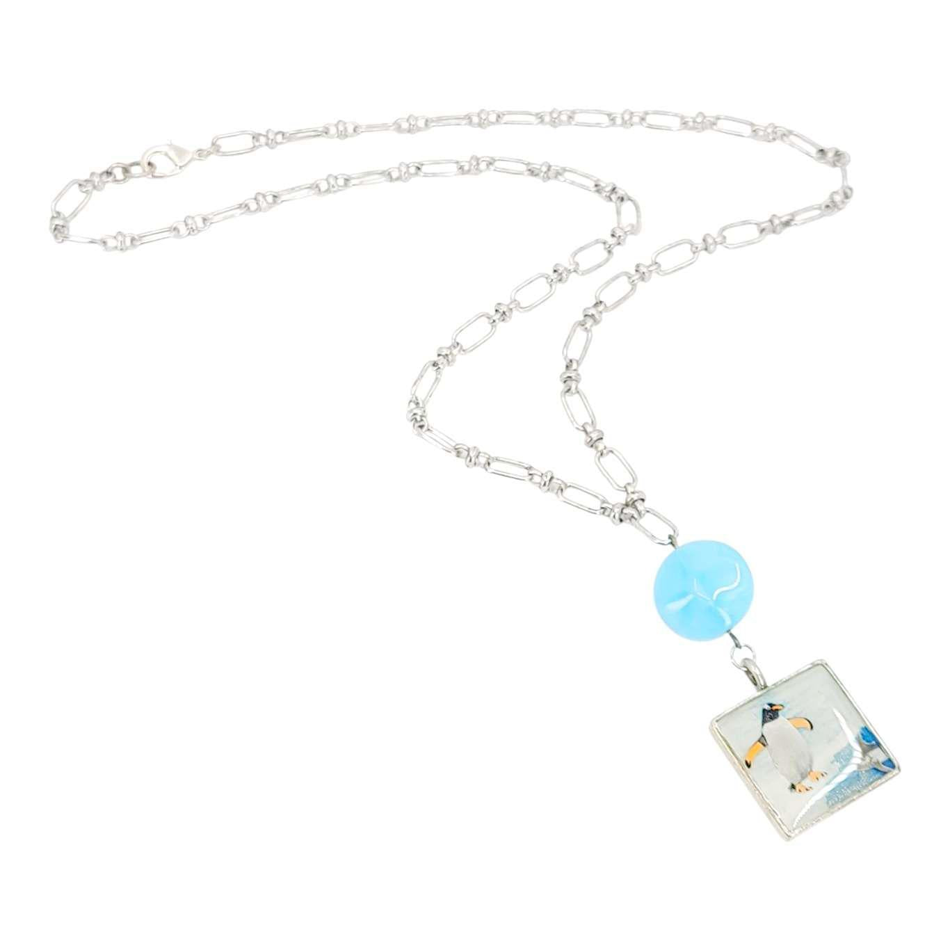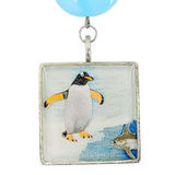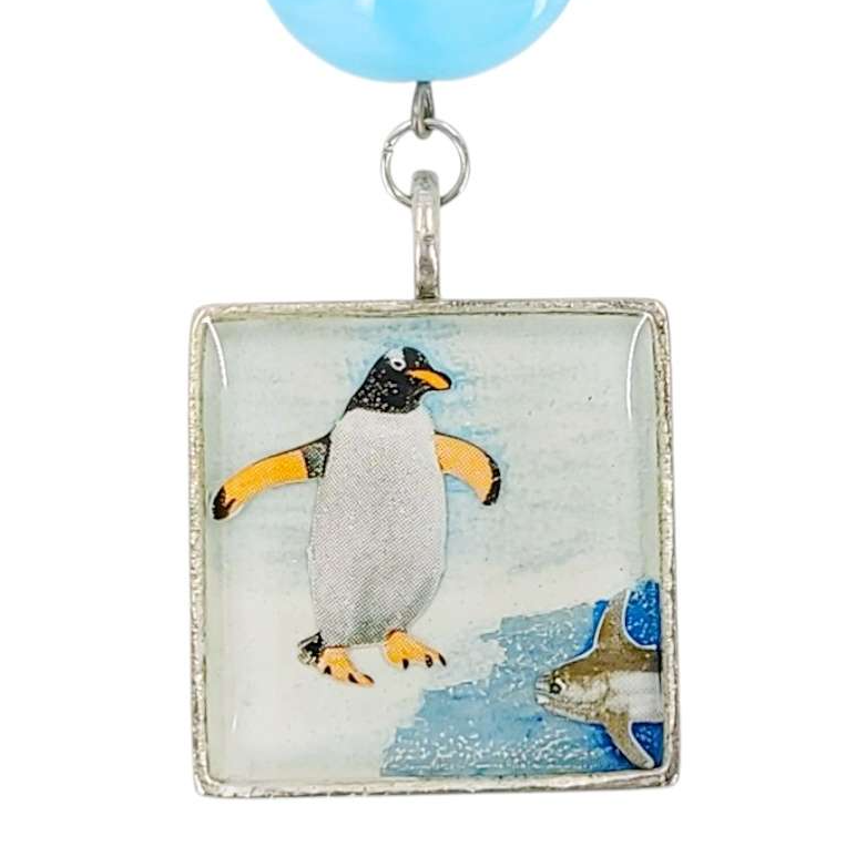• Materials: Silver-plated pewter, silver-plated brass, bead, resin, acrylic paint, penguin and fish printed on metal