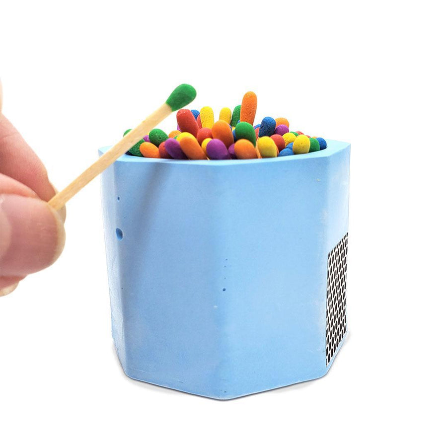 This soft sky blue concrete match holder features contrasting rainbow matches and protective cork feet. It comes with 70 safety matches and a striker sheet for easy lighting. This holder looks great with a candle, smudge stick, or palo santo bundle.