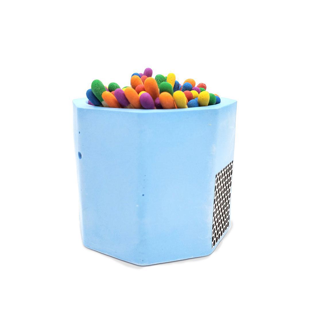 TP109 $30 - Sky Blue Body - Rainbow Matches - Concrete Match Holder