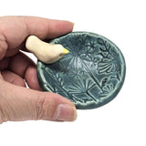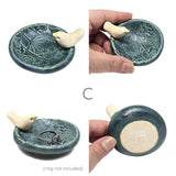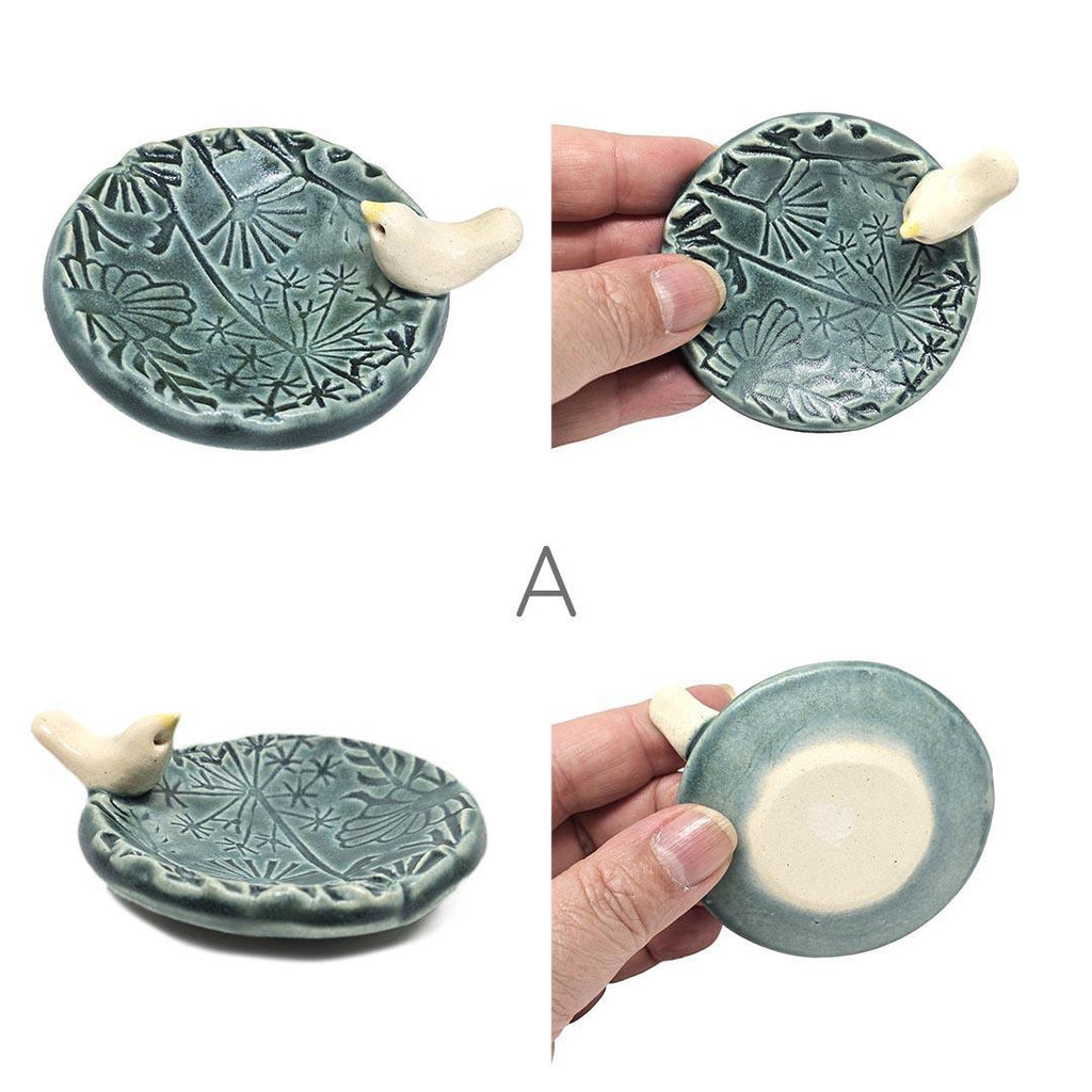TM606B $35 - Dark Teal Matte Floral Ring Dish - White Bird - B (2 5/8 in. diameter)