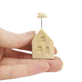 Tiny collectible ceramic houses, each with a tiny cloud floating above its roof.