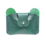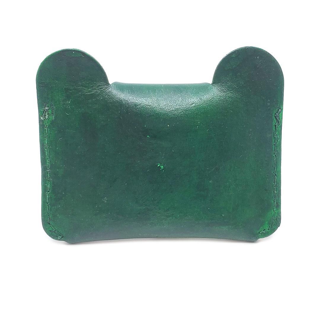 This compact green bear-shaped wallet is handcrafted from high-quality leather, blending playful design with everyday function. Each piece is carefully made using repurposed leather scraps, making it both eco-conscious and one of a kind. Perfect for cards, folded cash, or small essentials.