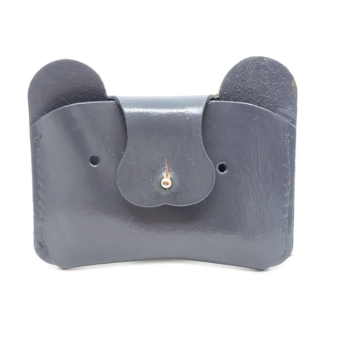 This compact gray bear-shaped wallet is handcrafted from high-quality leather, blending playful design with everyday function. Each piece is carefully made using repurposed leather scraps, making it both eco-conscious and one of a kind. Perfect for cards, folded cash, or small essentials.