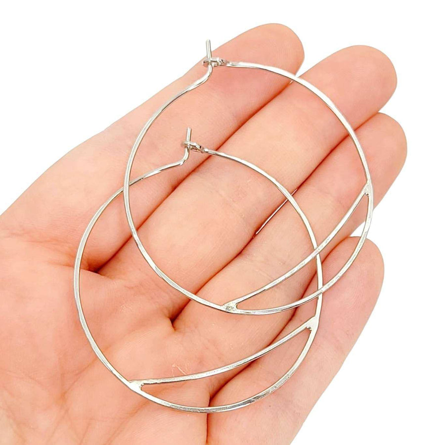 Lovely lightweight silver hoops with a curving bridge detail. Great for everyday wear!