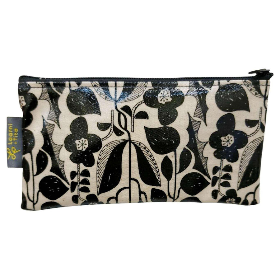 LT01M02 $25 - Dense Floral Black on White - Monochrome Small Wristlet