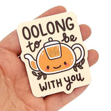 This vinyl sticker features the original artwork by Mis0 Happy--A charming tea pot brewing hot tea with the words "Oolong to be with you".