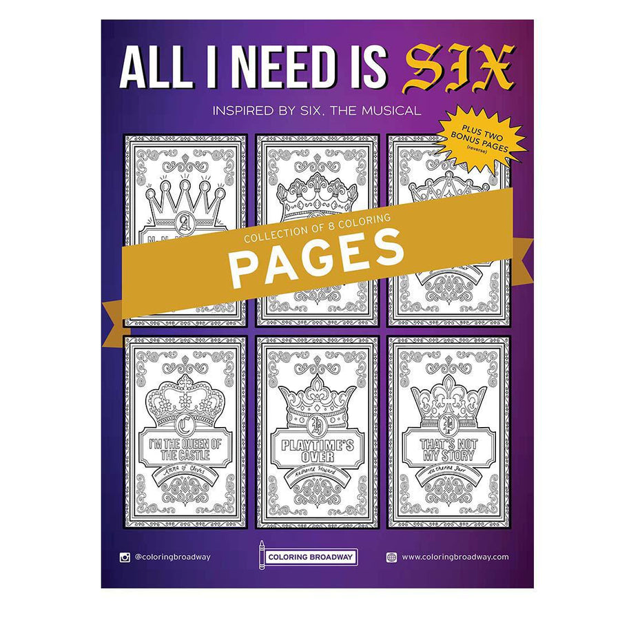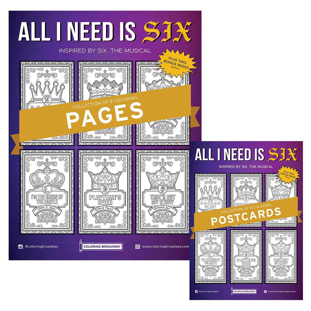 Coloring - All I Need is SIX (Pages or Postcards) by Coloring Broadway